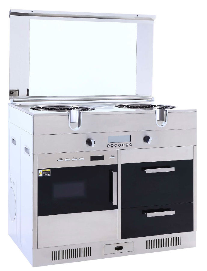 环保灶N合为一采用下排式设计,省去上方传统壁挂式吸油烟机的空间,环保灶厨柜融于一体,装置饰自在度高,为中岛式,开放式的现代厨房提供更多空间。